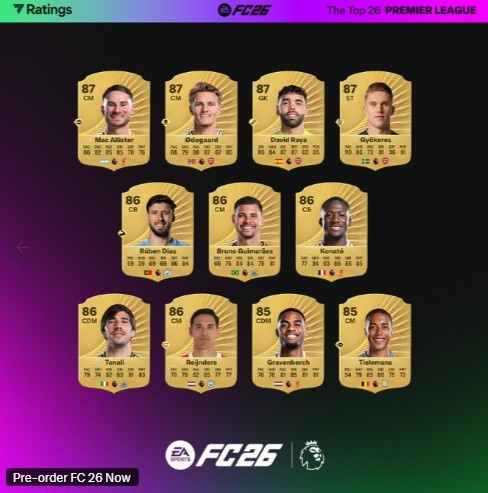开云体育-FC26英超球员TOP26评分:萨拉赫91分领跑,罗德里范迪克哈兰德90分紧随