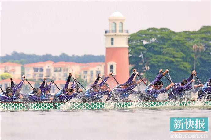 ■参赛队员动作一致,奋勇争先。昨天上午,第十五届全国运动会群众赛事活动龙舟项目决赛在佛山市南海区丹灶镇仙湖火热开桨。23支队伍云集于此,在湖上展开狂飙好戏。首日比赛,广东龙舟队不负众望,包揽全部3枚金牌。